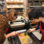 For the game that we create, we will use words that have more or less the same meaning in both languages. For example: koffie and kohi, dans and dansu, trap and tarappu, bier and bīru, ontembaar and otenba. With these words we create simple poems (language games). Then we design and create wood carved illustrations, that will be printed on the playing cards, by using traditional printing technique.